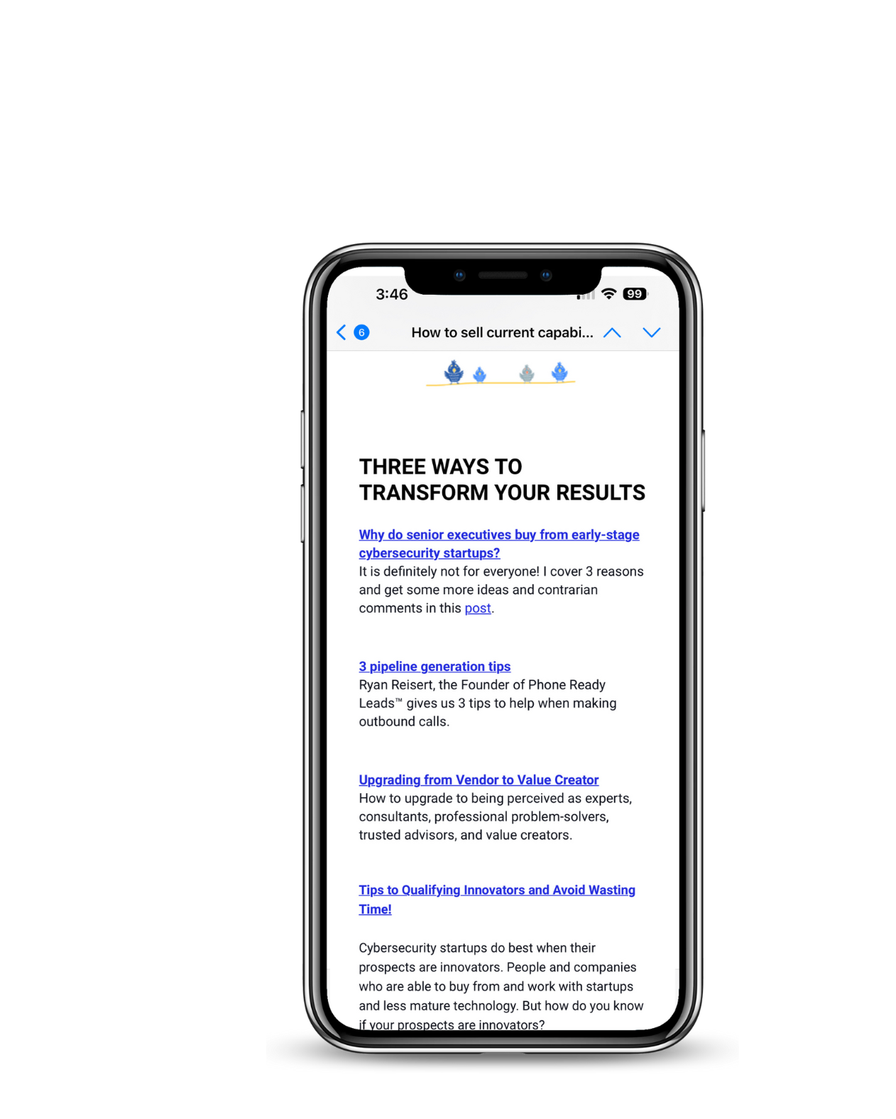 Sales Bluebird is the newsletter for cybersecurity sellers looking for fresh, modern ways to succeed in our crowded market.Each week, you will get tips that are easy to implement in your selling activities immediately.You'll get proven strategies to help you get more opportunities, maintain momentum in your sales cycles and win bigger deals.Short. Actionable. Game-changing.